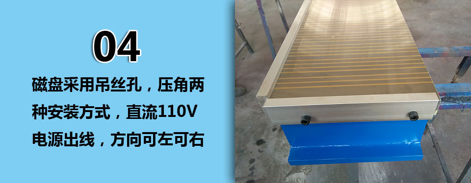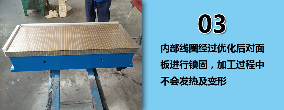 銑刨用強力電磁吸盤和各種銑床、刨床配套使用。它吸力強,使用安全可靠,對機械不宜裝夾的導磁工件定位非常方便。其中X91F系列產(chǎn)品能防止銑刨刀具磁化,提高加工精度。吸力≥160N/CM2。對于需要使用強吸力的磨床加工工件時,銑刨用強力電磁吸盤也可配套使用。 對于銑床、成型機、刨床、刨塔式銑床,進行重切削很有效。該系列磁盤是提高生產(chǎn)效率,降低工人勞動強度的理想選擇。