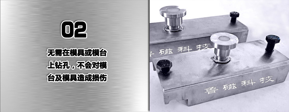 1.拆裝簡(jiǎn)便——省時(shí)、省工;傳統(tǒng)螺栓固定——拆裝困難,模具固定磁盒,耗工時(shí),費(fèi)人力。