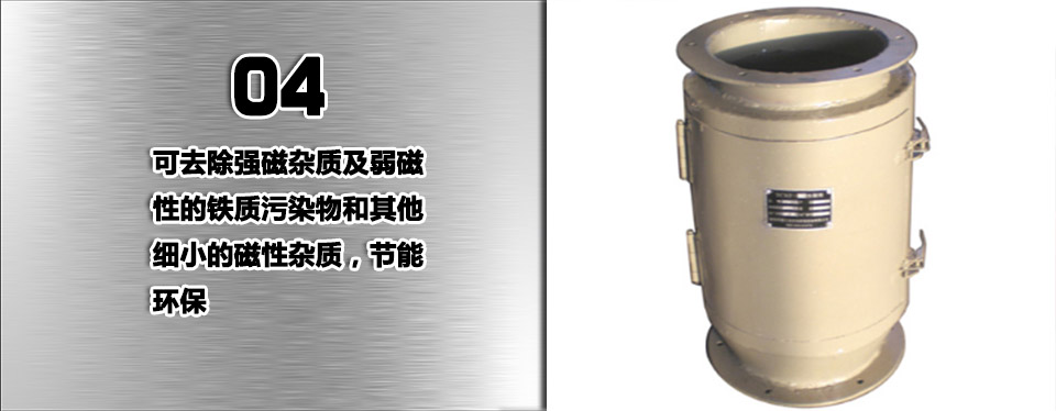 RCYT系列筒式永磁除鐵器是一種以永磁材料產(chǎn)生強大磁場吸引力的節(jié)能型設(shè)備,內(nèi)部采用釹鐵硼材料組成的環(huán)狀磁系,圓錐形體,結(jié)構(gòu)合理,磁場強度高??膳c固態(tài)原料輸送設(shè)備連接,活動式門扣,清除鐵質(zhì)方便,適用于食品、面粉、陶瓷、化工、水泥、建材、石英砂等行業(yè)各類固態(tài)小顆粒和粉末狀物料中的除鐵。
